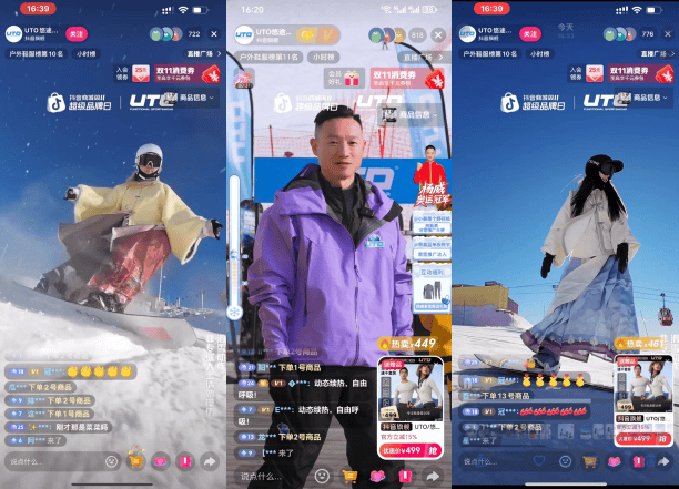 例如,围绕“全国最早开板节”核心事件,抖音电商“钻石”牌级服务商「祈飞」(杭州祈飞网络科技有限公司),以全案经营伙伴的角色定位,深度参与户外贴身层品牌UTO悠途的经营,在货盘策略上聚焦滑雪装备核心品类,通过前置备货规划,保障货品供应稳定性、价格优势;并邀请奥运冠军杨威打造品牌大事件,在新疆高势能户外滑雪场景,直播亲测、背书产品力,烘热 #和UTO一起热力回雪 品牌话题,期间品牌商家总曝光突破1.7 亿,实现户外兴趣人群的扩容、种草与转化。